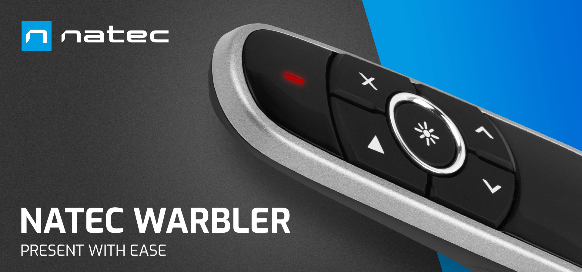 Natec WARBLER is a stylish wireless presenter with red laser pointer. Control your presentation,