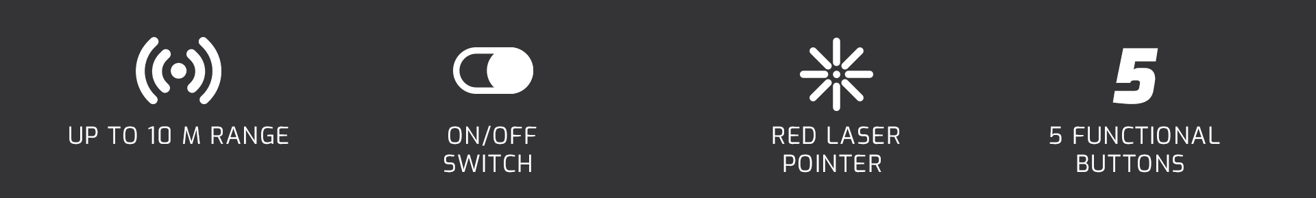 Thanks to the wireless technology 2.4 GHz you can freely control your presentations