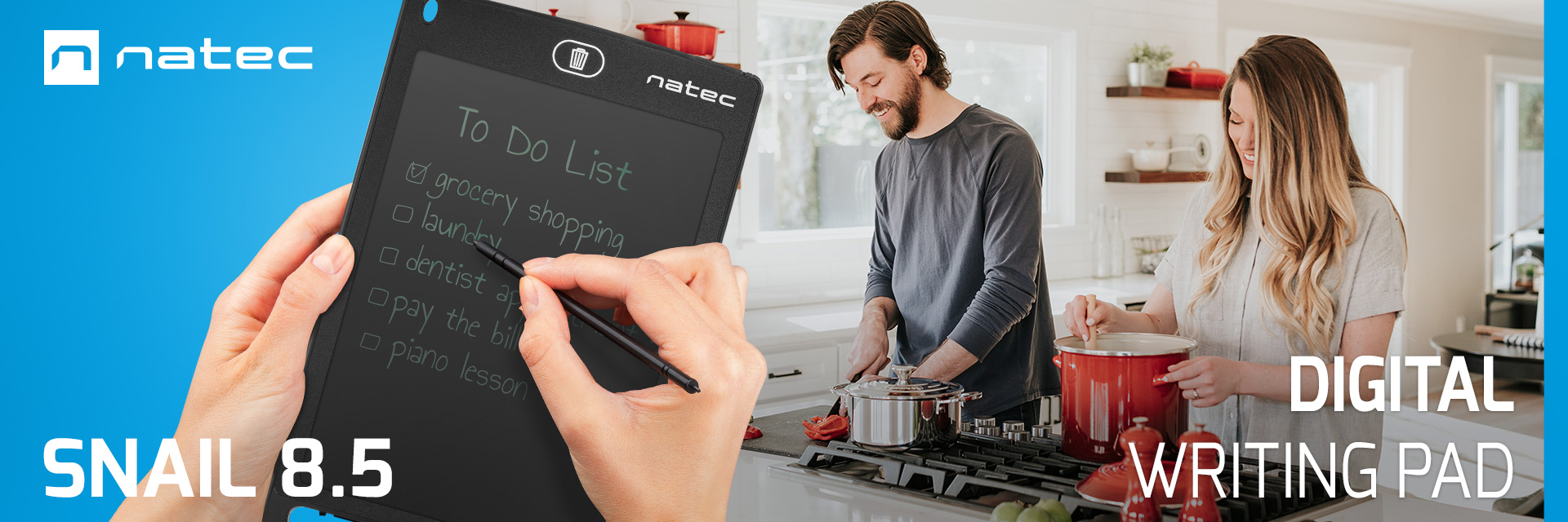 Natec Snail 8.5" is a cutting-edge device for making quick notes, calculations and drawings without wasting valuable paper. Its high-quality LCD screen, a wealth of functionalities and ergonomic design make it perfect for home, office and school use, making note-taking a pleasant experience everywhere.