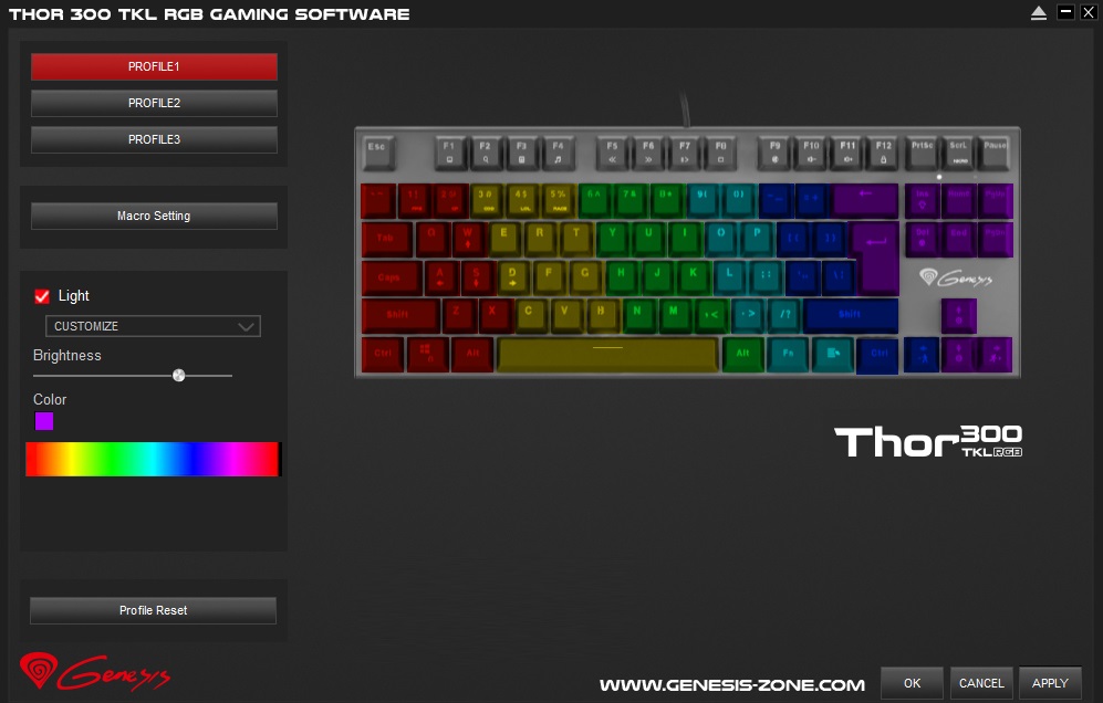 ![]() | Advanced SoftwareThor 300 TKL RGB forms a spectacular set together with dedicated, advanced software. Using it, you will not only calibrate the backlight according to your preferences, but also set up profiles and macros. It allows you to take full control of your equipment the way you like it. |