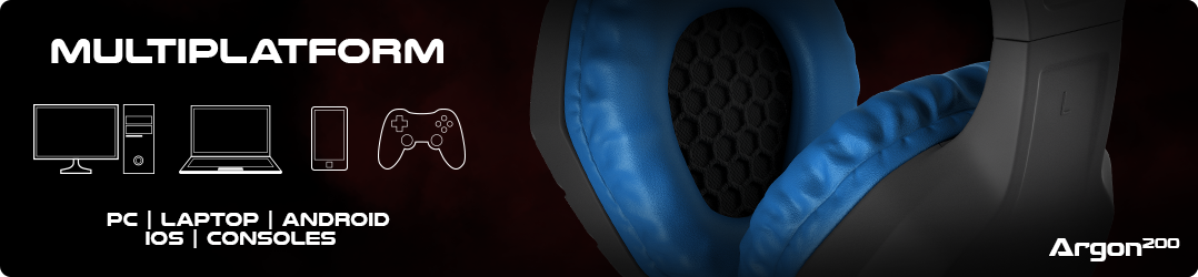 LARGE TRANSMITTERS Argon 200 provide an excellent quality of sound which is by all means essential during the game. The best sound reflecting events from the virtual world to the greatest extent is provided by the high quality large transmitters (50 mm) and parameters, such as dynamics at the level of 96 dB or impedance at the level of 32 ohms.