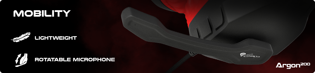 GENESIS Argon 200 Red HEADPHONES WITH POWER Genesis Argon 200 are headphones which combine a good quality of sound, power and microphone sensitivity, the last being highly valued during games. In addition, the set is characterized by effective finishing which gives it a unique character and makes every user feel like a professional player.