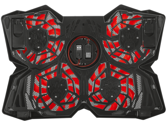 Optymalna wydajnośćGranie ma ogromny wpływ na wydajność twojego laptopa, często powodując przegrzanie. GXT 278 chroni Twój laptop przed tym problemem, chłodząc go czterema wentylatorami, które optymalizują przepływ powietrza. Temperatura twojego laptopa pozostaje pod kontrolą, dzięki czemu możesz grać w swoje ulubione gry przez wiele godzin. Zarówno prędkość wentylatora, jak i kąt widzenia są łatwo regulowane. | ![]() |