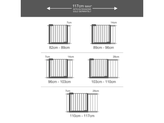 SzczegółyJeśli potrzebujesz rozszerzyć swoją bramkę, możesz tego dokonać dzięki dodatkowym elementom dostępnym w różnych rozmiarach aby zapewnić najlepsze dopasowanie. Upewnij się, że szerokość miejsca, w którym bramka ma zostać zamontowana została uprzednio dobrze zmierzona. | |
