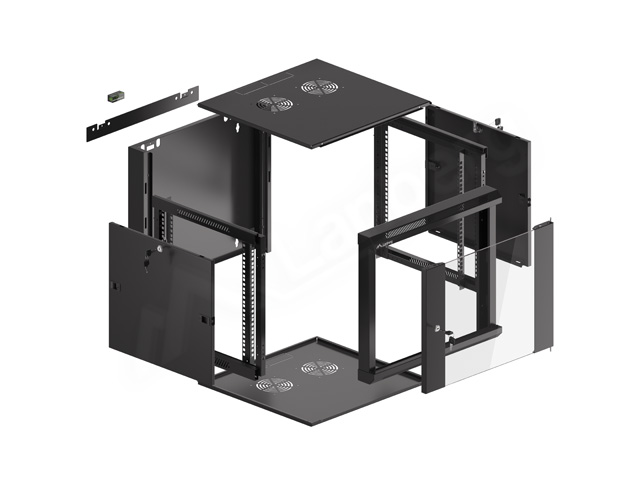 - Szafa Instalacyjna Rack Wisząca 19" 9u 570x600 Szybki Montaż Czarna Lanberg (Flat Pack)