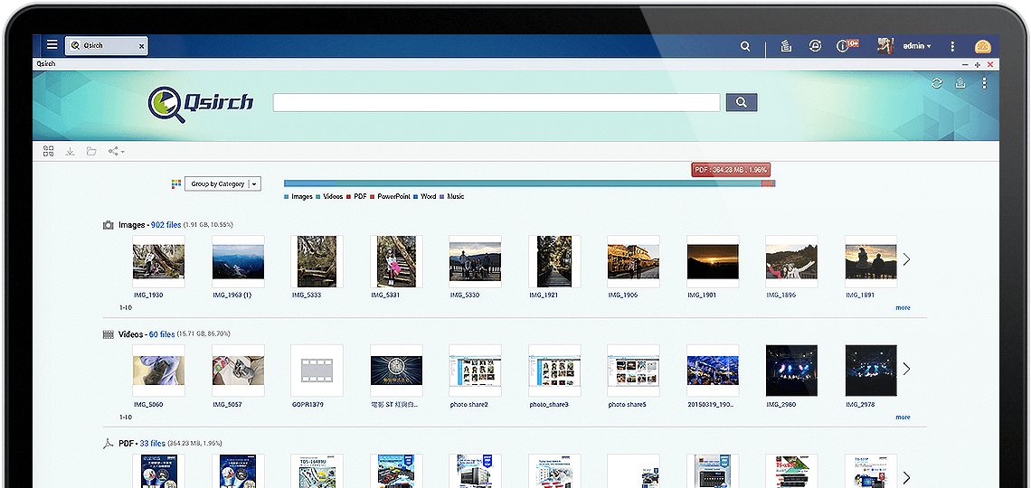Model TVS-873e to wysokowydajne centrum przechowywania danych z wieloma wydajnymi aplikacjami. Aplikacja OCR Converter wyodrębnia tekst z obrazów, ułatwiając organizację, edycję i wyszukiwanie plików. Aplikacja Qfiling automatyzuje porządkowanie plików — wystarczy ustalić warunki porządkowania i harmonogram, a pliki będą porządkowane i archiwizowane zgodnie z preferowanymi ustawieniami. Narzędzie do pełnotekstowego wyszukiwania Qsirch umożliwia szybkie wyszukiwanie plików i zapewnia rozszerzenie Qsirch Helper do przeglądarek Google Chrome™ i Mozilla Firefox® w celu wyszukiwania plików na serwerze NAS podczas używania Google Search™, znacznie usprawniając pracę i skracając czas wyszukiwania plików na serwerze NAS.