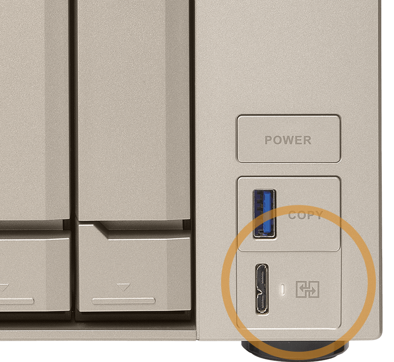 Naciśnij przycisk „Copy”, aby błyskawicznie utworzyć kopię zapasową danych z zewnętrznych urządzeń i zapisać ją na serwerze NAS albo odwrotnie.