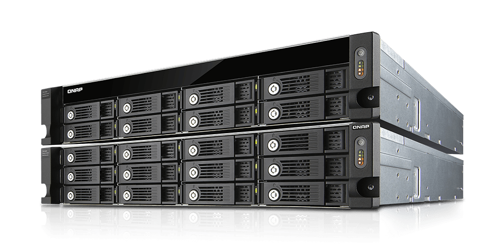 Serwer TS-432XU-RP umożliwia rozbudowę dostępnej przestrzeni poprzez dołączenie modułu rozszerzającego UX-800U-RP (8-wnękowego) lub UX-1200U-RP (12-wnękowego). Dzięki opracowanemu przez firmę QNAP mechanizmowi wirtualnych grup JBOD (VJBOD) niewykorzystane miejsce na serwerze TS-432XU-RP może posłużyć do zwiększenia pojemności innego serwera QNAP NAS.