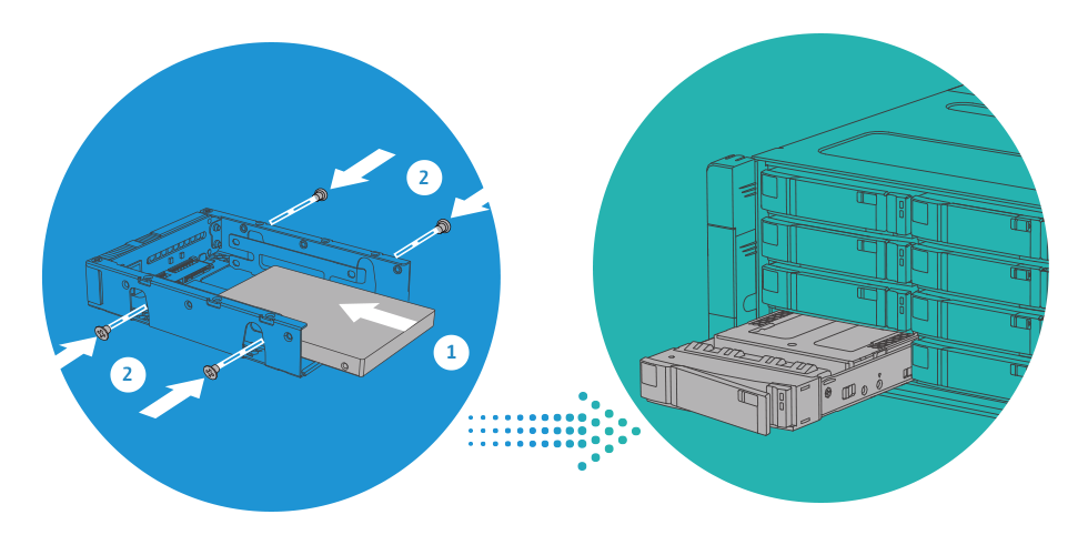Model QDA-SA2 można łatwo zainstalować w serwerze Windows®/Linux® SAS z dwoma kontrolerami i w 3,5-calowej kieszeni dysku serwera Enterprise ZFS NAS (Model kieszeni dysku: SP-ES-TRAY-WOLOCK). (Serwer NAS wymaga wersji QES 2.0.0 (lub nowszej))